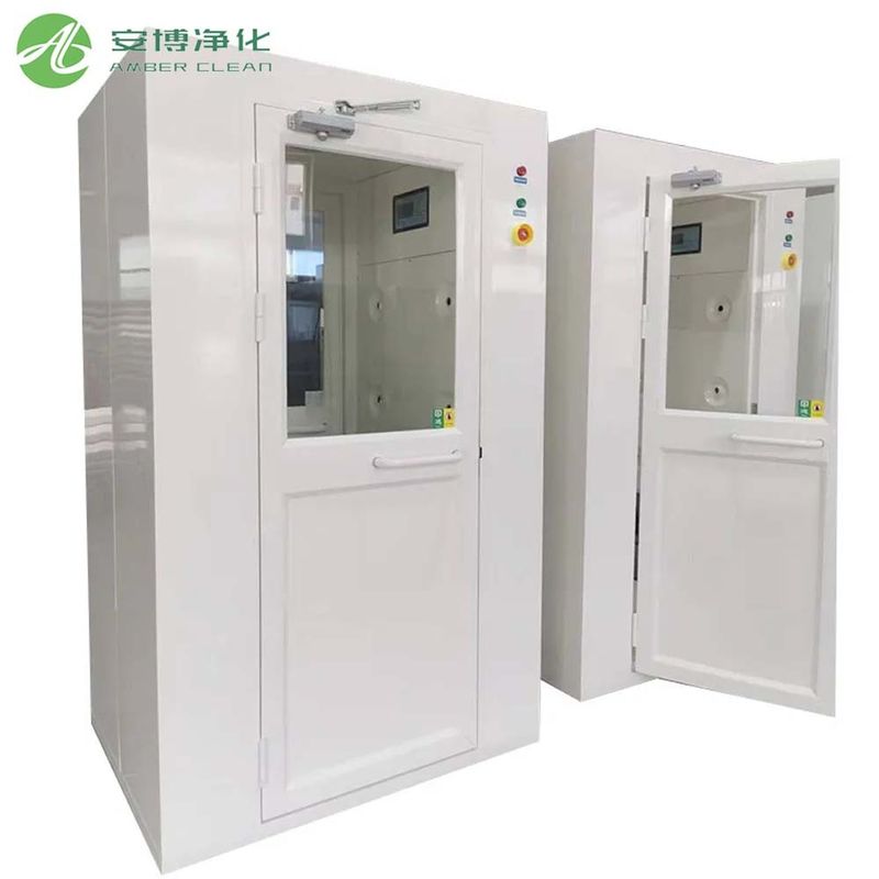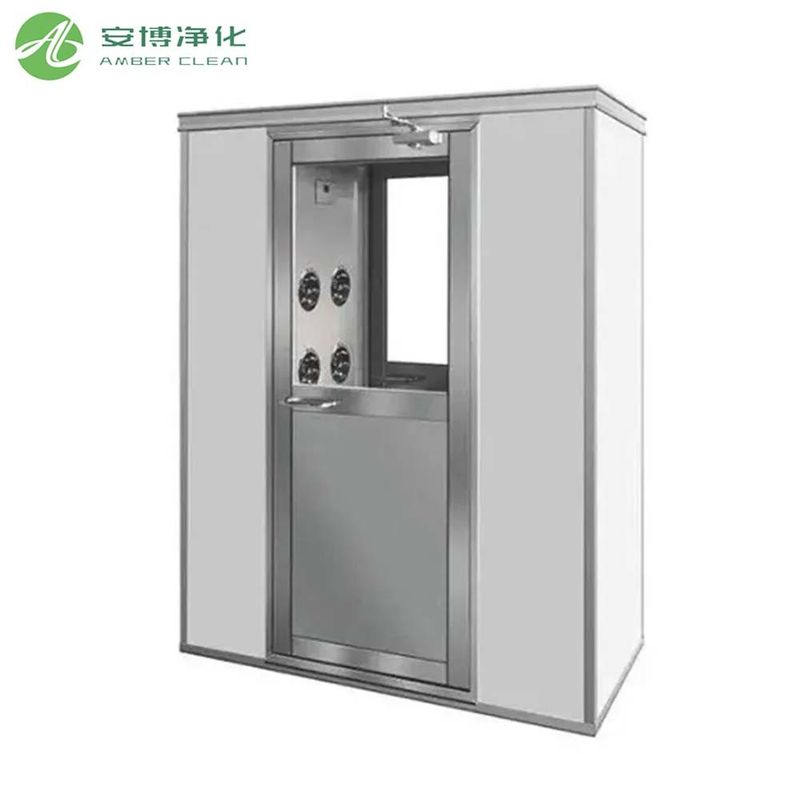 AMBER Doble soplado individual Sala de ducha de aire libera un fuerte flujo de aire limpio a través del sistema de suministro de aire de alta eficiencia superior y doble lateral, con una velocidad de flujo de aire de ≥25 m/s, eliminando eficazmente más del 99% de las partículas de polvo en la superficie de la ropa y los objetos de las personas que entran en el área limpia. El equipo está equipado con un filtro primario y un filtro de alta eficiencia HEPA para asegurar que la limpieza del suministro de aire alcance los estándares ISO Clase 5 (Clase 100).